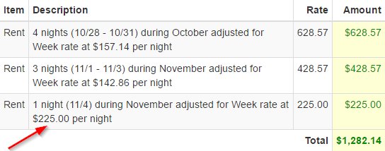 Suppose that you want every night after a week to be a flat $225. Instead of worrying if your other nightly rates will kick in at the right amount, or using a discount for 8+ nights, you can simply set 225 as your extra pro-rate amount.