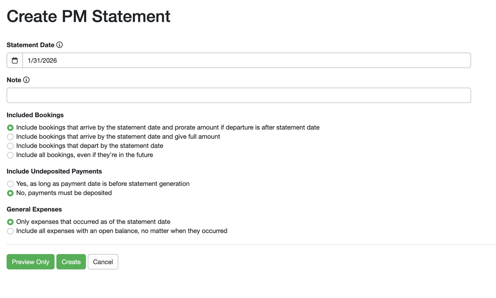 Thanks, Anne. To my knowledge, "Include bookings that arrive by the statement date and prorate amount if departure is after statement date" has always been an option on the PM Statement. Are you saying that selection now also prorates the expenses not just the booking revenue? As in ALL expenses? (Pro-rating a cleaning fee, for instance, is not super helpful. Just the commission.)