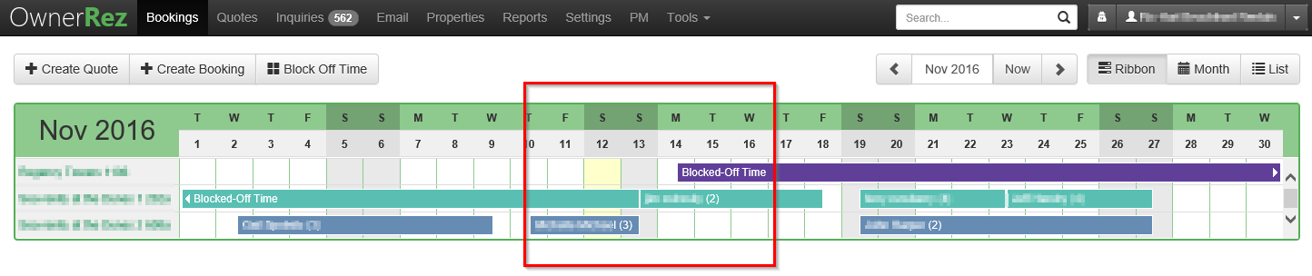 When I look at the individual bookings the current shows the correct date, check out on 11/13, and the next booking also shows the correct date, 11/13.