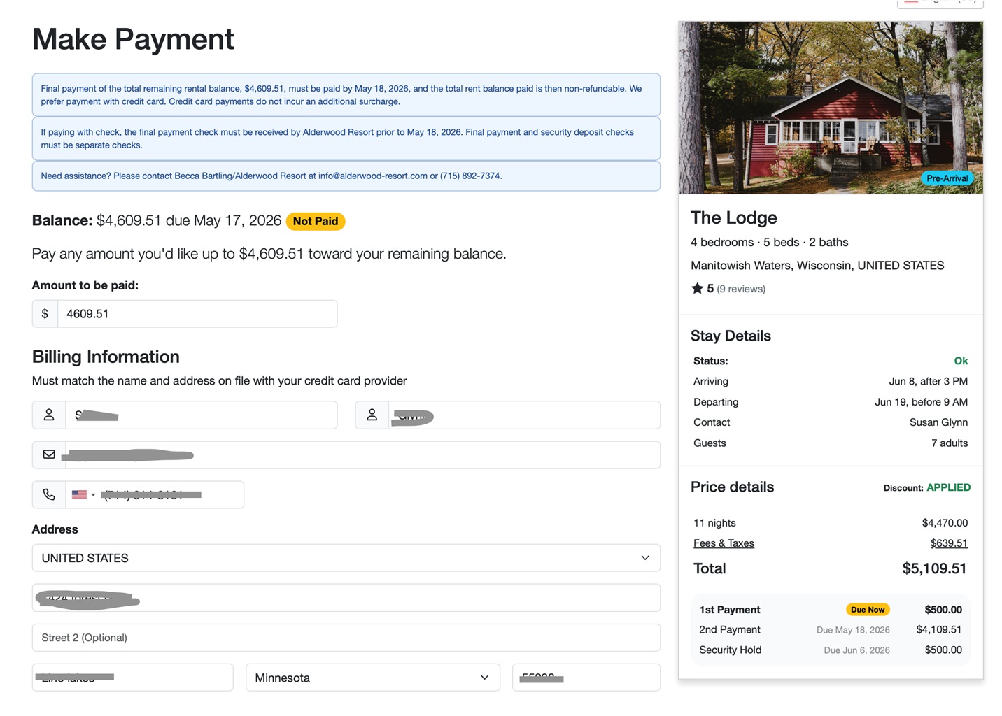 I'm using the BUPAY link from a template email to send guests here to make changes to their final payment if desired. However, I've noticed it says 1st payment (due now) which is incorrect. This guest has already paid their 1st payment (non-refundable deposit) and needs to pay the 2nd payment. Why does it say "due now", basically asking for another 1st payment?