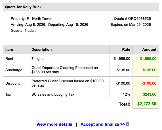 A guest informed me today that the discount I applied to her quote was not showing up when she attempted to "Accept & finalize" her booking. Upon further review, the Confirm & Pay page is NOT matching the emailed Quotes. Furthermore, when the guest finalizes the booking and makes a payment, the discount does not auto-correct or get re-applied... it's like it was never added to begin with. This is not only frustrating (for the guest and property manager), but also a huge time waster to have to go back and manually apply a discount that was already applied when the Quote was made. Is anyone else having this issue? Rent/Cleaning Fee/Tax are still populating perfectly fine, but discounts ARE NOT.