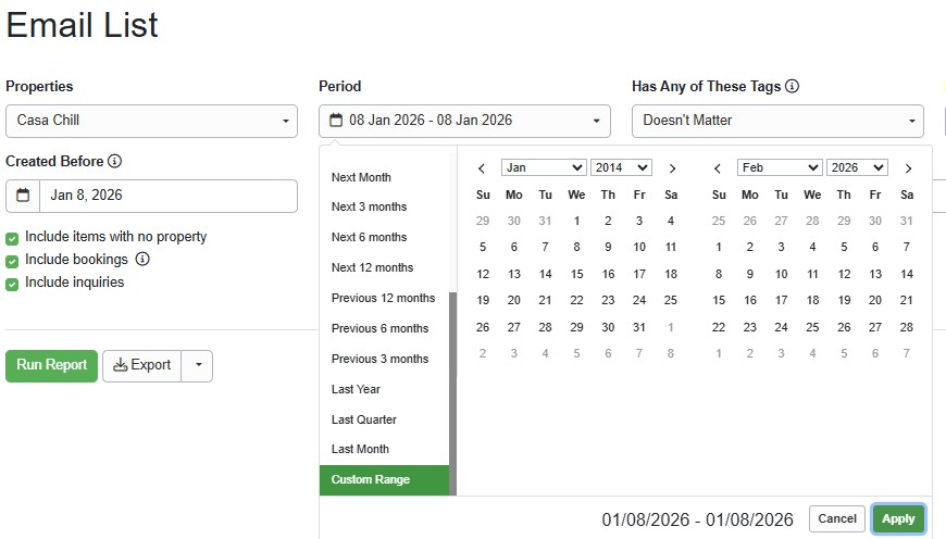 The drop down offers a custom date range beyond the choices of 1 year or quarter, but when I change the start date year, it reverts back to todays date! Aarg! What am I doing wrong?