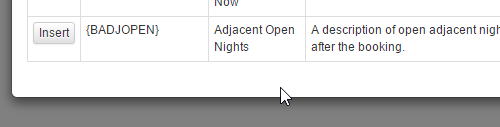 Check out the new {BADJOPEN} field code too. If you're asking someone if they want to buy an extra night, that will write out a nice description of WHICH nights are open on either side: So your email template might look something like this: