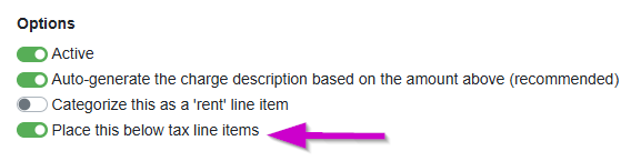 Make note that adding it this way will only apply the percentage to Rent and not your additional surcharges (pet fee, cleaning fee, etc.). There is a feature request out there for a new-style surcharge that will apply to rent + surcharges: