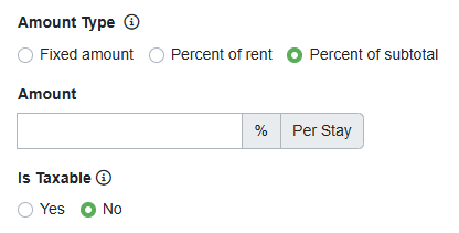 Please note that this would only work for direct bookings, as OTAs like Vrbo won't honor this setting and will still apply the surcharge above the tax lines. You can create a separate custom surcharge for other OTAs like Vrbo, and increase the amount by the tax percentage. So, for example, if the processing fee is 3% and your taxes are 12%, you could set the processing fee to 3.36% (3*12%). Additionally, the custom surcharge would give you the percent of subtotal option to calculate on the other booking charges, and not just the rent.