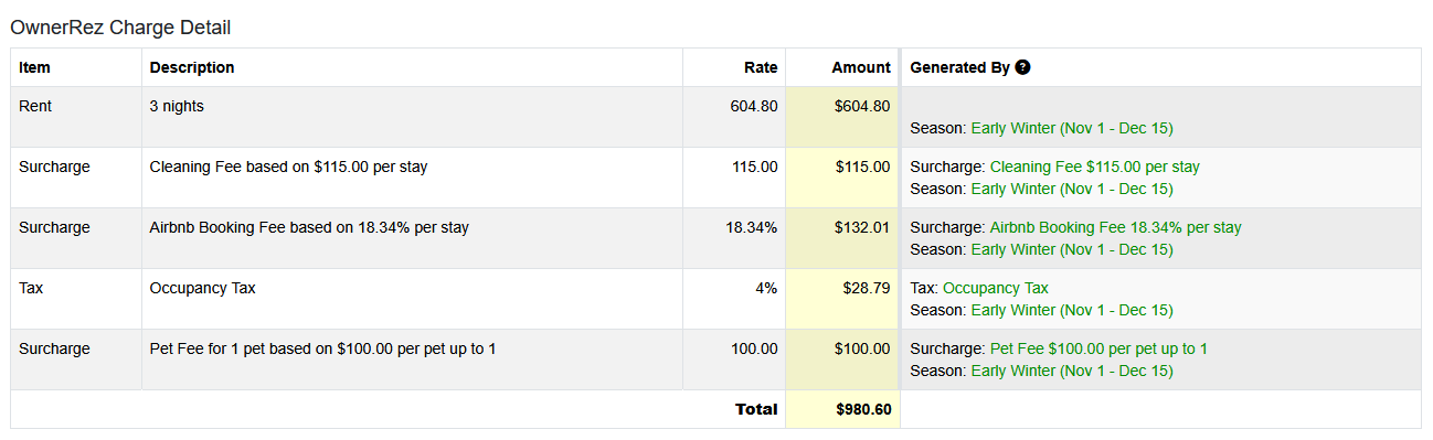 I went back and added a line number to the surcharge to see if it solves that problem. It should have been ranked last so it applied to everything above but it seems it didn't work. Using the Channel Tester the math makes sense now, with the exception of the Pet Fee. It doesn't seem to be applying it to that. Pet fee is in position 7 and airbnb surcharge is in position 10