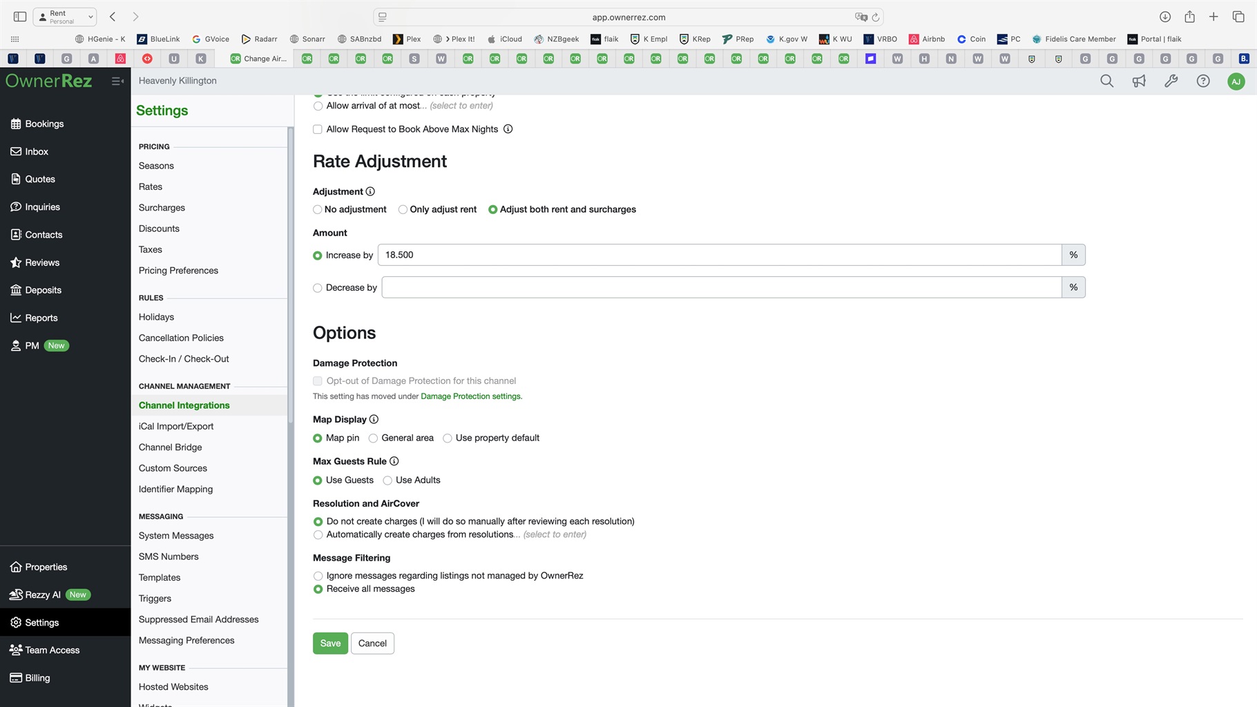 Channel integration - Airbnb - Rate Adjustment - Adjust both rent and surcharges? - I did not get any errors or questions.