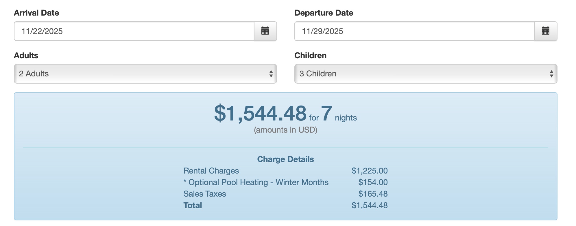 This produces on my website a quote that the guest is able to see immediately, without waiting for them to hear back from me, as follows:
