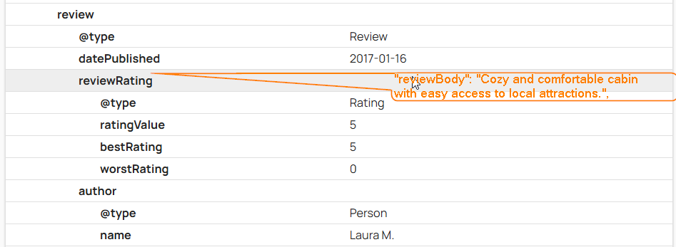 Currently, it looks like only the review rating is generated by the default schema, but not the review description. Please add review description (at last the snippet):