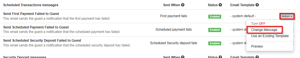 There are three system messages that automatically send when payments fail, shown in the screenshot below. These will work for your Vrbo bookings with failed payments as well.