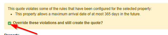 and then you'll see a checkbox asking if you still want to create a quote that breaks your rules: