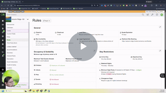 The minimum/maximum night settings from the Rate Calendar are already available within Season settings; it's just the Changeover Rules that are left out for some reason. PLEASE add the Changeover Rules options to the Season settings as well, to help consolidate the number of touchpoints we need to remember to make to change settings as needed.