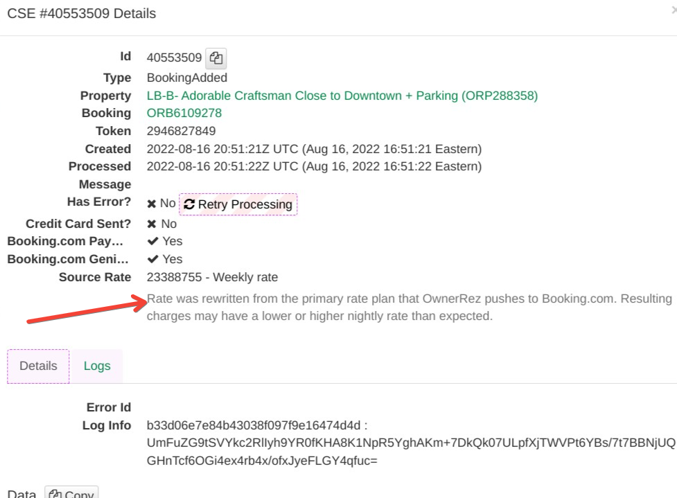 I got a Booking.com booking, but it has different rates from what seems like should be configured per OwnerRez.