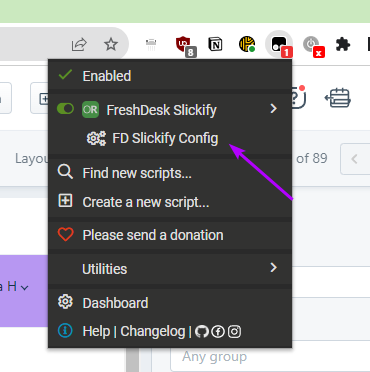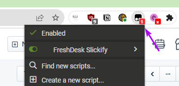 - Refresh your FreshDesk tab and make sure Tampermonkey has access -- you should see a highlight once the extension is enabled: