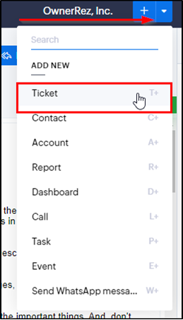 - Search for a ticket in Zoho by searching the client’s name or email.