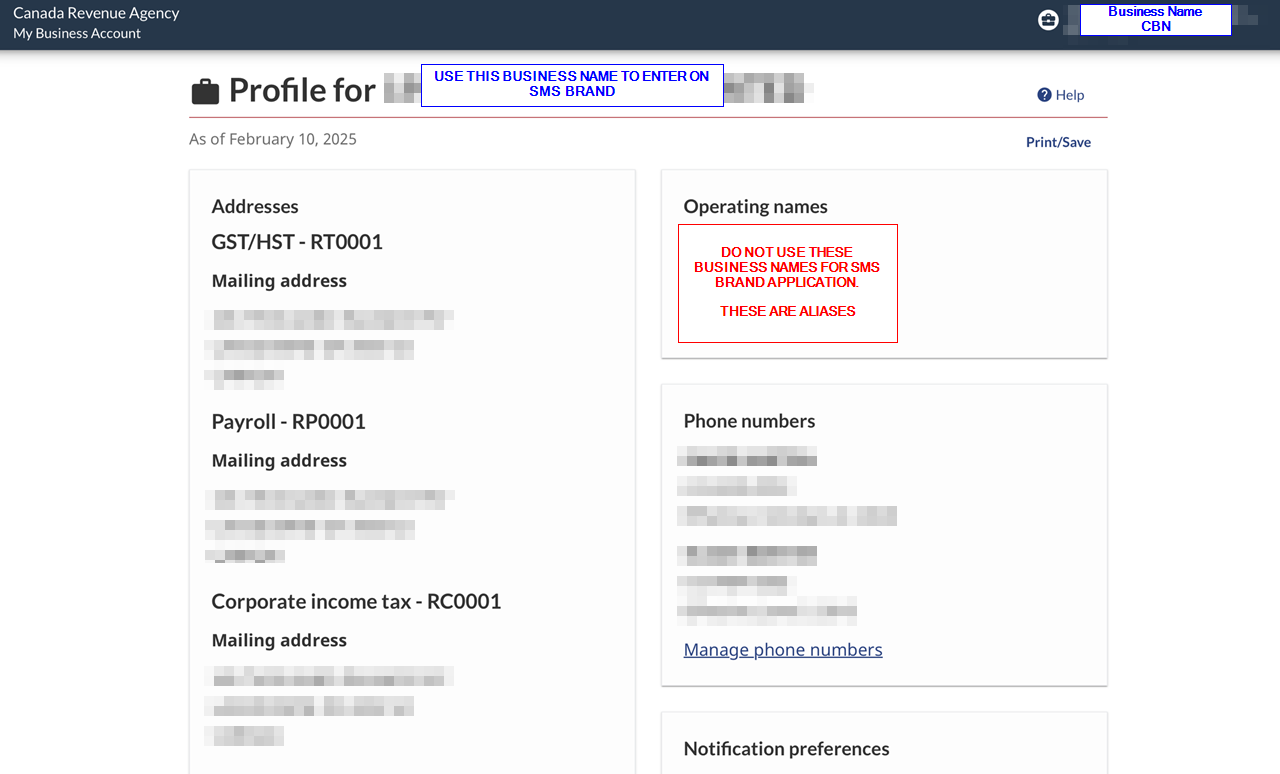 - If they have a registered CBN but DO NOT operate as a Sole Proprietor, follow EIN instructions above. Have a Canadian Revenue Agency page handy.