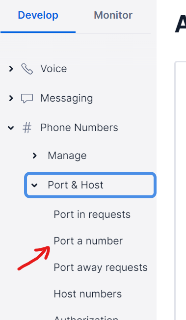 - Go to “Phone Numbers > Port & Host > Port a Number”